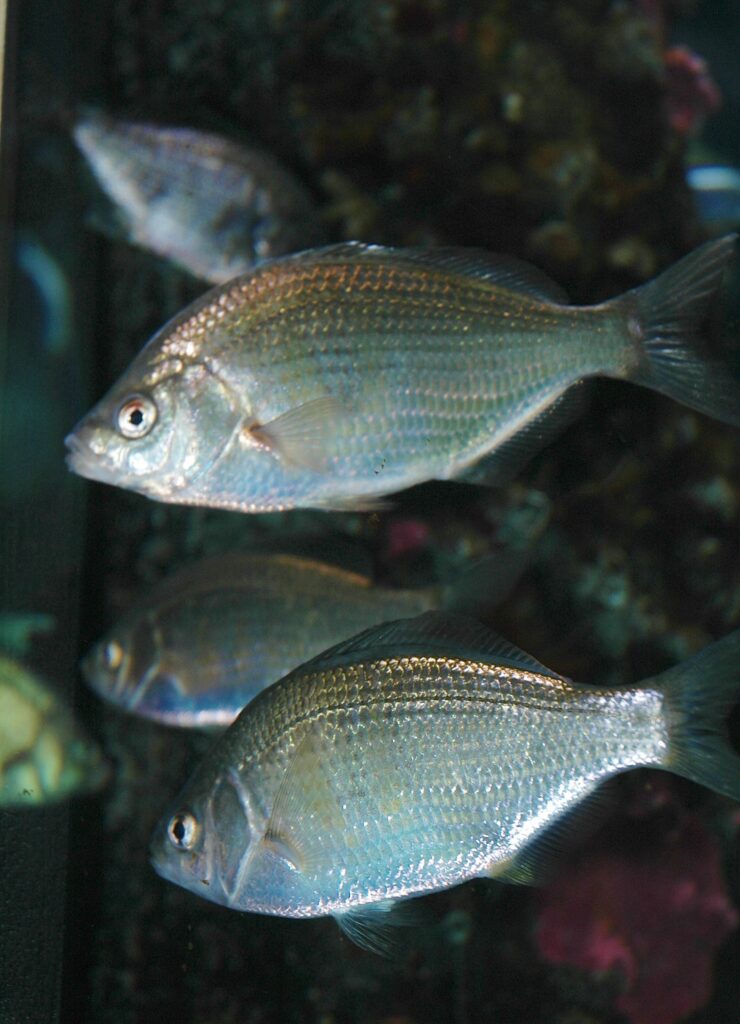 They are usually silver-colored with a dark bar on their midside and a forked tail; they can weigh up to 4 lbs.