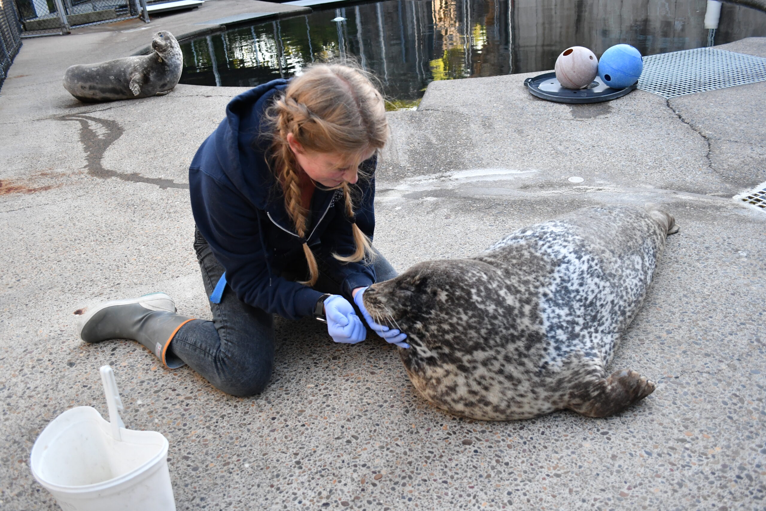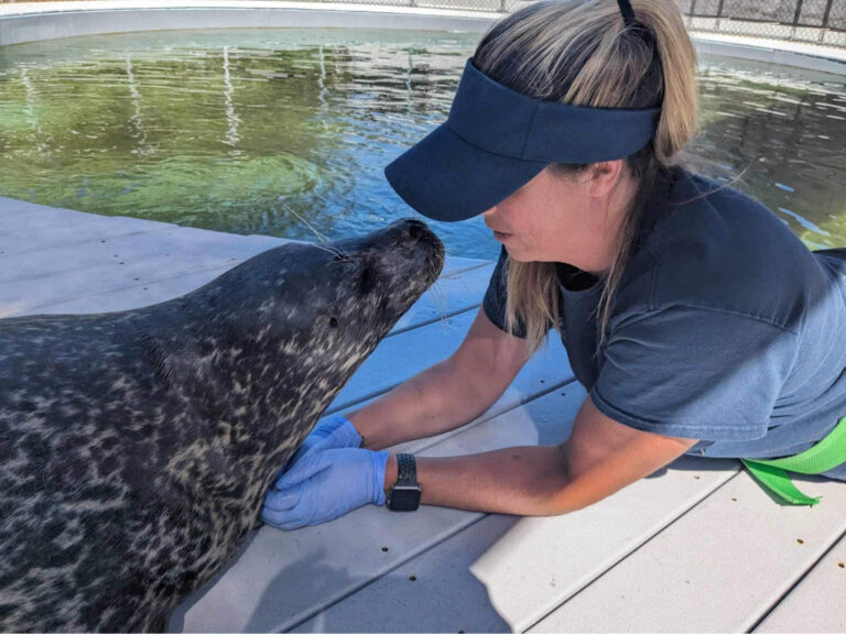 “It was a hard call to make, but the right one,” said Brittany Blades, OCAq’s Curator of Marine Mammals. “We wanted there to be as little stress as possible for Boots, and saying goodbye while she could still participate in her own care was important.”